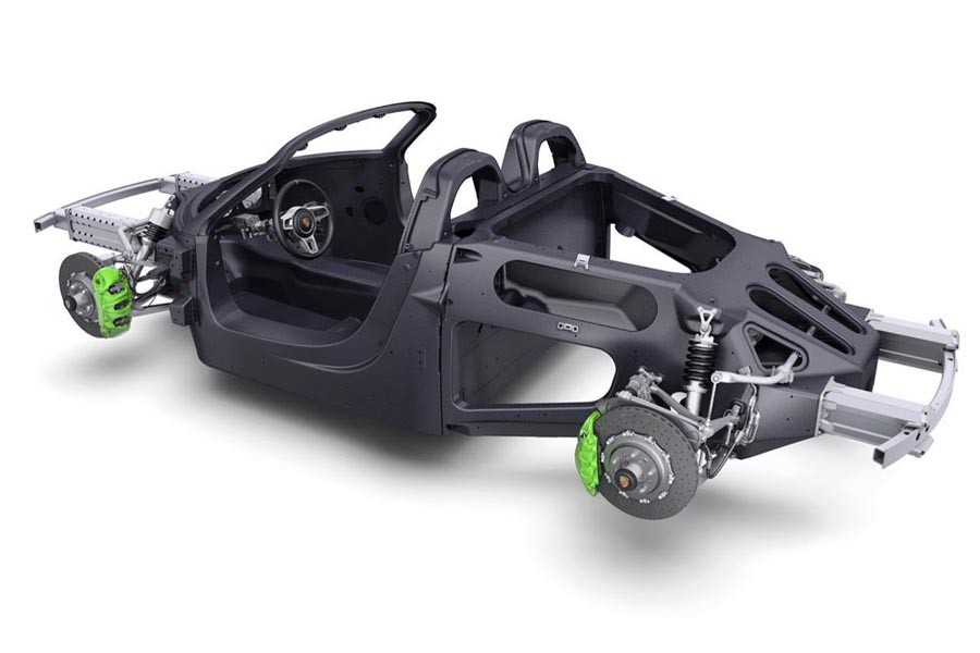 Το αμάξωμά της με διαστάσεις 4.643 χλστ. μήκος, 1.940 χλστ. πλάτος, 1.167 χλστ. ύψος και 2.730 χλστ. μεταξόνιο, ζυγίζει 1.634 κιλά και είναι κατασκευασμένο από ανθρακόνημα. Παράλληλα οι ζάντες των 20 ιντσών εμπρός και 21 ιντσών πίσω είναι μαγνησίου και συνδυάζονται με ελαστικά διαστάσεων 265/35 και 325/30 αντίστοιχα.