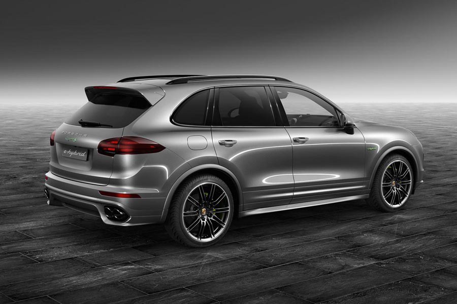 Το τμήμα Porsche Exclusive της γερμανικής φίρμας παρουσιάζει τη μία και μοναδική βελτιωμένη Cayenne S E-Hybrid, η οποία φέρει αποκλειστικά χαρακτηριστικά σε σχέση με τα υπόλοιπα μοντέλα ευρείας παραγωγής. Το συγκεκριμένο μοντέλο έχει «ντυθεί» σε μεταλλικό χρώμα Meteor Grey, εξοπλιζεται με bi-xenon φωτιστικά σώματα και με το αισθητικό πακέτο SportDesign. Αυτό περιλαμβάνει όλα τα μαύρα τμήματα στο χρώμα του αμαξώματος, σπορ εξάτμιση και μαύρες γυαλιστερές ζάντες αλουμινίου 21 ιντσών, πίσω από τις οποίες διακρίνονται οι πράσινες δαγκάνες των φρένων.