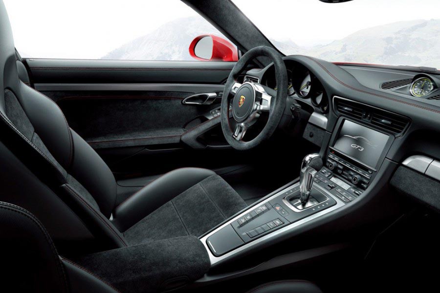 Στο εσωτερικό της η σχεδίαση δεν ξεφεύγει από τα αυστηρά πλαίσια των Porsche με νέο στοιχείο την ευμεγέθη κεντρική κονσόλα. Στην 911 GT3 ευρεία χρήση αλκαντάρα και δέρματος τονίζουν τον σπορ χαρακτήρα, ενώ τα πολύ όμορφα στάνταρ καθίσματα, μπορούν να αντικατασταθούν με άλλα τύπου μπάκετ για ακόμα πιο απαιτητικούς.