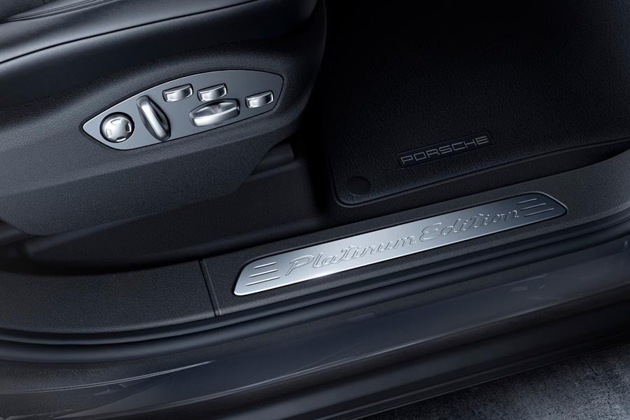 Στο εσωτερικό, η πολυτέλεια τονίζεται περαιτέρω λόγω της παρουσίας δερμάτινου σαλονιού με ηλεκτρικά σπορ καθίσματα και αλκαντάρα στη βάση τους, αλλά και με τις επενδύσεις αλουμινίου στα σκαλοπάτι, που αναγράφουν «Platinum Edition». Μαζί με τα παραπάνω, η Cayenne Platinum περιλαμβάνει το τιμόνι Power Steering Plus, το σύστημα Park Assist με κάμερα, αλλά και αυτόματους αντιθαμβωτικούς καθρέπτες και φιμέ πίσω τζάμια.