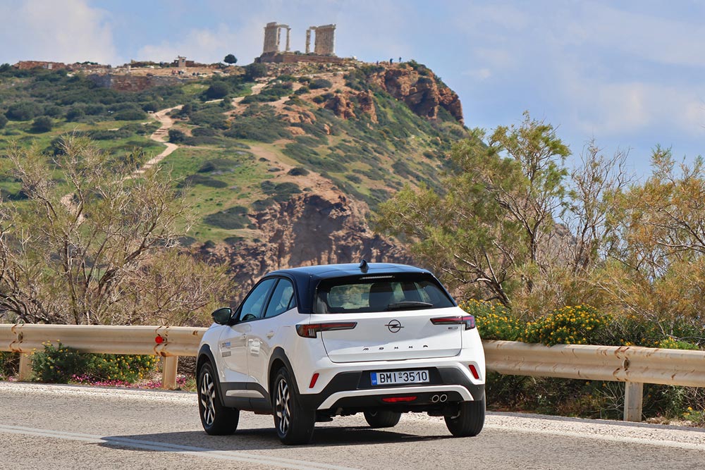 Πέρα όμως από την τεχνολογία του κινητήριου συνόλου του, το Mokka 1.2 Hybrid συνεχίζει να ξεχωρίζει και για τη σχεδίασή του. Η εμπρός όψη χαρακτηρίζεται από το Opel Vizor, το χαρακτηριστικό μαύρο πάνελ που ενσωματώνει τη μάσκα και τους προβολείς σε μία ενιαία επιφάνεια. Το αποτέλεσμα είναι ένα σύγχρονο και δυναμικό αισθητικό σύνολο που διαφοροποιεί το μοντέλο από τον ανταγωνισμό. Οι διαστάσεις του παραμένουν ιδανικές για χρήση στην πόλη. Με μήκος 4,15 μ. και μεταξόνιο 2.557 χλστ., παραμένει ευέλικτο στους στενούς δρόμους και στο παρκάρισμα, ενώ ταυτόχρονα προσφέρει ικανοποιητικούς χώρους για τέσσερις ενήλικες επιβάτες στο εσωτερικό. Εδώ, η σχεδίαση ακολουθεί τη φιλοσοφία Pure Panel, όπου ο ψηφιακός πίνακας οργάνων των 10 ιντσών και η κεντρική οθόνη πολυμέσων, επίσης 10 ιντσών, δημιουργούν ένα ενιαίο και καλαίσθητο οπτικό σύνολο. Το σύστημα infotainment υποστηρίζει συνδεσιμότητα με Apple CarPlay και Android Auto, ενώ η εργονομία του παραμένει «μελετημένη» ώστε οι βασικές λειτουργίες να είναι εύκολα προσβάσιμες από τον οδηγό. Από εκεί και πέρα, ο χώρος αποσκευών φτάνει τα 350 λίτρα, ενώ με την αναδίπλωση των πίσω καθισμάτων μπορεί να ξεπεράσει τα 1.100 λίτρα, προσφέροντας μεγαλύτερη ευελιξία για μεταφορά αποσκευών ή εξοπλισμού. Θετικές κριτικές αποσπά και σε ποιότητα κατασκευής, τόσο σε επίπεδο υλικών, όσο και σε φινίρισμα – συναρμογή.