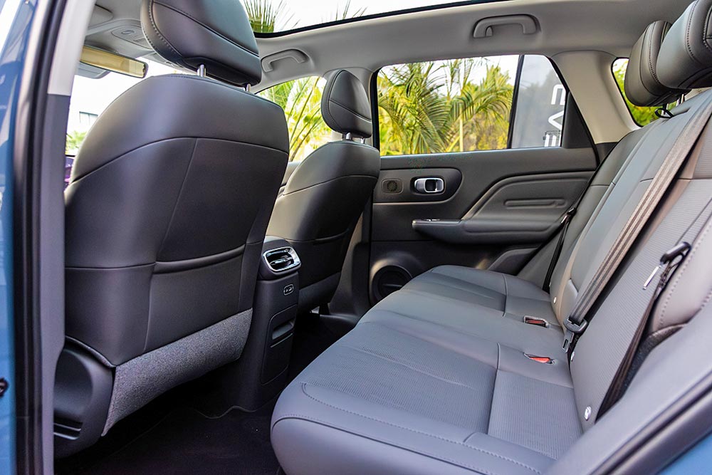 Με μήκος 4.515 χλστ., πλάτος 1.855 χλστ., ύψος 1.655 χλστ. και μεταξόνιο 2.735 χλστ., τοποθετείται στο επίκεντρο της δημοφιλούς C-SUV κατηγορίας και παρέχει άνετους χώρους για όλους και για όλα. Παράλληλα, η πλατφόρμα LEAP 3.5 εγγυάται την τέλεια συνεργασία του hardware με το software. Το εσωτερικό του με τα μαλακά και σκληρά υλικά διακρίνεται για την στιβαρή του κατασκευή, ενώ ο σχεδιασμός είναι λιτός και απέριττος, σύμφωνα με τα νέα σχεδιαστικά πρότυπα. Μέχρι πέντε ενήλικες θα βολευτούν χωρίς παραχωρήσεις, ενώ έχουν στη διάθεση τους 22 βοηθητικούς αποθηκευτικούς χώρους μέσα στην καμπίνα για τα μικροπράγματα τους. Το πορτμπαγκάζ ξεκινά από τα 455 λίτρα (430+frunk 25 λίτρων κάτω από εμπρός το καπό) και φτάνει μέχρι τα 1.415 λίτρα, εφόσον αναδιπλωθούν τα πίσω καθίσματα.
