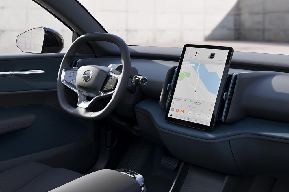 Το ιδιαίτερα «ντιζαϊνάτο» μικρότερο αυτοκίνητο και SUV της Volvo, κερδίζει αμέσως τις εντυπώσεις με το δυναμισμό και τη στιβαρότητα που αποπνέει εξωτερικά. Το κόμπακτ διαστάσεων αμάξωμά του έχει μήκος 4.233 χλστ., πλάτος 1.838 χλστ., ύψος 1.550 χλστ. και μεταξόνιο 2.650 χλστ. Το εσωτερικό του είναι ο ορισμός του μινιμάλ σχεδιασμού. Όλες σχεδόν οι λειτουργίες του αυτοκινήτου γίνονται μέσω της μεγάλης κεντρικά τοποθετημένης οθόνης αφής υψηλής ευκρίνειας 12,3 ιντσών. Αυτή προσφέρει άμεση επισκόπηση και έλεγχο των πληροφοριών του οδηγού, της πλοήγησης, της ψυχαγωγίας, του κλιματισμού, των εφαρμογών στο αυτοκίνητο, του τηλεφώνου, των καμερών υποβοήθησης στάθμευσης και άλλων λειτουργιών υποστήριξης. Στο προσεγμένο σε ποιότητα εσωτερικό του Volvo EX30 θα φιλοξενηθούν τέσσερα άτομα κανονικού αναστήματος, ενώ για τις αποσκευές υπάρχουν 318 λίτρα συν 61 λίτρα κάτω από το δάπεδο του πορτ μπαγκάζ και άλλα 7 λίτρα κάτω από το εμπρός καπό για την αποθήκευση των καλωδίων φόρτισης.