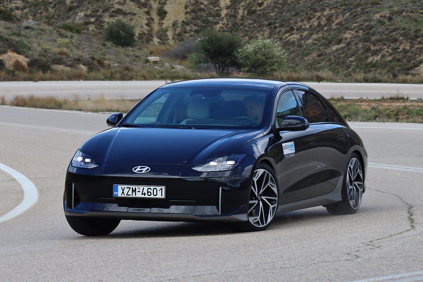 Το μακρύ μεταξόνιο των 2.950 χλστ. σε συνδυασμό με το τελείως επίπεδο δάπεδο εξασφαλίζουν πολύ άνετες μετακινήσεις σε όλους τους φιλοξενούμενους, ωστόσο τα 401 λίτρα για τις αποσκευές είναι λίγα για μια τέτοια σύγχρονη «λιμουζίνα». Κάτω από το εμπρός καπό υπάρχουν άλλα 45 λίτρα για την αποθήκευση των καλωδίων φόρτισης -μεταξύ άλλων. Τις ανέσεις που απολαμβάνουν οι φιλοξενούμενοι του Ioniq 6 ενισχύει και το γεγονός ότι είναι ένα πάρα πολύ ξεκούραστο αυτοκίνητο στο ταξίδι, ενώ παρά τον αυξημένο όγκο και βάρος του (από 1.775 κιλά) συμπεριφέρεται πολύ ισορροπημένα και σε πιεσμένους ρυθμούς στις στροφές.