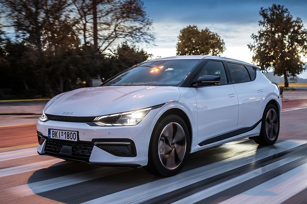 Το εντυπωσιακό σχεδιαστικά EV6 με το δυναμικό αμάξωμα των 4.680 χλστ. μήκους διατίθεται στην αρχική έκδοση με ένα ηλεκτροκινητήρα ισχύος 170 ίππων και 350 Nm ροπής. Η κίνηση μεταδίδεται στους πίσω τροχούς, με τη μπαταρία των 58 kWh η μεικτή αυτονομία είναι 394 χλμ. και το 0-100 χλμ./ώρα ολοκληρώνεται σε 8,5 δλ. Το αμέσως πιο ισχυρό EV6 με τους 229 ίππους και τα 350 Nm ροπής ενσωματώνει μπαταρία 77,4 kWh για αυτονομία 528 χλμ. (0-100 χλμ./ώρα σε 7,3 δλ.). Το πιο δυνατό τετρακίνητο (μέχρι την έλευση του GT) με τους δύο ηλεκτροκινητήρες έχει ισχύ 325 ίππους και 605 Nm ροπής. Εξοπλίζεται με την μπαταρία των 77,4 kWh, επιταχύνει από στάση στο 0-100 χλμ./ώρα σε 5,2 δλ. και η αυτονομία αγγίζει τα 484 χλμ.