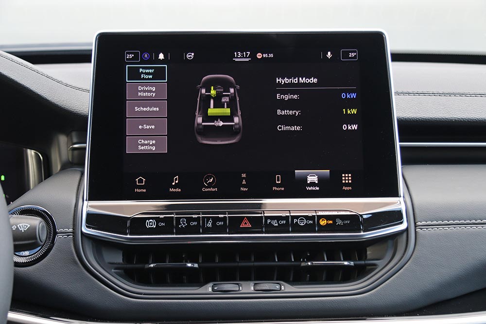 Αυτοκίνητο πολλαπλών χρήσεων και δυνατοτήτων είναι στο δρόμο το Jeep Compass PHEV 4xe, αφού μπορεί να πηγαίνει ηλεκτρικά και αθόρυβα στην πόλη, να ταξιδεύει με άνεση σε κάθε δρόμο και να «σκαρφαλώνει» εκτός δρόμου. Σε κάθε περίπτωση ο οδηγός έχει στη διάθεσή του το σύστημα Selec-Terrain με τις επιλογές Auto, Snow, Sport, Sand/Mud, συν τα 4WD Lock, 4WD Low και τον έλεγχο κατάβασης Hill Decent Control. Η εμπλοκή του πίσω άξονα είναι ταχύτατη, διότι λόγω ηλεκτροκινητήρα δεν υπάρχουν απώλειες όπως σε ένα κλασικό 4×4. Επίσης, εκτός δρόμου βοηθούν η αυξημένη απόσταση από το έδαφος των 201 χλστ., μαζί με τις γωνίες προσέγγισης των 16,8 μοιρών, ράμπας 22,9 μοιρών και εξόδου 31,7 μοιρών.