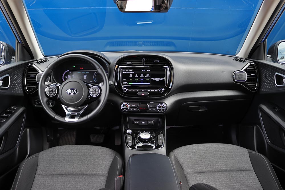 Στο εσωτερικό κυριαρχούν οι πολλές καμπύλες επιφάνειες και τα στρογγυλά σχήματα, όπως είναι στη χαρακτηριστική κεντρική κονσόλα. Στα θετικά του γνωρίσματα ανήκουν ακόμα η πολύ καλή ποιότητα κατασκευής με χρήση μαλακού υλικού στο ταμπλό και με τη στιβαρή συναρμογή. Πρόσθετα, η καμπίνα του e-Soul είναι ευρύχωρη για όλους τους φιλοξενούμενους, ενώ ικανοποιητικό είναι το πορτ μπαγκάζ των 315 λίτρων.