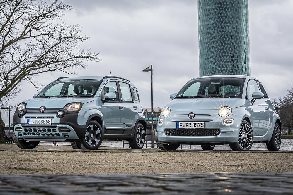Κοινό στοιχείο των Fiat Panda και 500 είναι ο Hybrid κινητήρας. Αμφότερα χρησιμοποιούν το έξυπνο και αποδοτικό ήπιο υβριδικό σύστημα της Fiat που συντίθεται από μοτέρ βενζίνης 1.0 λτ. της οικογένειας FireFly και ηλεκτροκινητήρα BSG (Belt-integrated Starter Generator) 3,6 kW. Η τροφοδοσία του ηλεκτρικού μοτέρ γίνεται από μπαταρία λιθίου τάσης 12 V, η οποία επιτρέπει στο υβριδικό πακέτο να έχει μικρές διαστάσεις και χαμηλό συνολικό βάρος. Η συνολική απόδοση του συστήματος φτάνει τους 70 ίππους με 92 Nm ροπής και το κιβώτιο είναι χειροκίνητο με 6 σχέσεις, ενώ πολύ σημαντική είναι η αθόρυβη και πολιτισμένη λειτουργία που ταιριάζει τέλεια στις αστικές συνθήκες. Η μεικτή κατανάλωση ξεκινά από 4,6 λτ./100 χλμ., ενώ με εκπομπές CO2 από 105 γρ./χλμ. τα τέλη κυκλοφορίας είναι μηδενικά και η είσοδος στο Δακτύλιο της Αθήνας ελεύθερη καθημερινά.