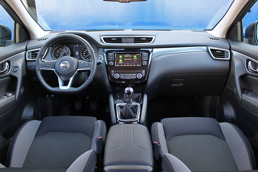 Θετικές είναι οι εντυπώσεις που αποκομίζει κανείς και από το εσωτερικό του Qashqai. Αρχικά ο παρατηρητής εισπράττει μια πολύ καλή εικόνα στον τομέα της ποιότητας, γεγονός που ενισχύεται από τη χρήση παχιού αφρώδους υλικού σε όλο σχεδόν το ταμπλό. Το σύστημα πολυμέσων με την οθόνη των 7 ιντσών είναι πλέον απαραίτητο αξεσουάρ, καθώς και πολλά ακόμα κομφόρ. Το SUV της Nissan είναι σε θέση να καλύψει και τις μεταφορικές ανάγκες μιας τετραμελούς οικογένειας. Στην καμπίνα το ωφέλιμο ύψος, πλάτος και αέρας για τα πόδια είναι αρκετά, όπως επίσης και τα 430 λίτρα του πορτ μπαγκάζ.