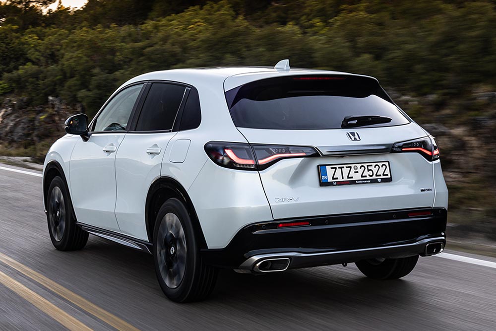 Το κομψού σχεδιασμού Honda ZR-V με το αμάξωμα των 4,6 μ. μήκους κινείται αποκλειστικά από το full hybrid σύνολο e:HEV. Αυτό συνδυάζει ένα ατμοσφαιρικό τετρακύλινδρο βενζινοκινητήρα 2.0 λίτρων και δυο ηλεκτροκινητήρες. Το θερμικό μοτέρ αποδίδει 143 PS και 186 Nm, ενώ ο κυρίως ηλεκτροκινητήρας που αναλαμβάνει την κίνηση αποδίδει 184 PS και 315 Nm ροπής. Το Honda ZR-V επιταχύνει από 0-100 χλμ./ώρα σε 7,8 δευτερόλεπτα, η μέγιστη ταχύτητα φτάνει τα 173 χλμ./ώρα, και η μεικτή κατανάλωση είναι 5,7 λτ./100 χλμ. με εκπομπές CO2 130 γρ./χλμ. Στο δρόμο το ZR-V είναι πολύ ισορροπημένο, πολύ άνετο, εμπνέει αμέσως εμπιστοσύνη και πολύ σταθερό ανεξαρτήτως διαδρομής και ταχύτητας κίνησης.