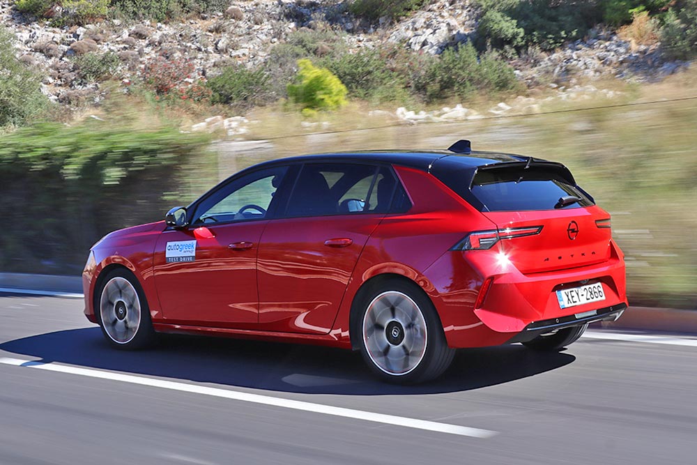 Ο τρικύλινδρος turbo κινητήρας των 1.199 κ.εκ. που κινεί το Astra, αποδίδει στην αρχική του έκδοση 110 ίππους στις 5.500 σ.α.λ. και 205 Nm ροπής στις 1.750 σ.α.λ. Συνδυάζεται αποκλειστικά με χειροκίνητο κιβώτιο 6 ταχυτήτων και είναι επαρκής για το αμάξωμα των 1.301 κιλών. Σύμφωνα με τις εργοστασιακές μετρήσεις, η επιτάχυνση στα 0-100 χλμ./ώρα ολοκληρώνεται σε 10,8 δευτερόλεπτα και η μέγιστη ταχύτητα φτάνει τα 199 χλμ./ώρα. Η μεικτή κατανάλωση καυσίμου είναι 5,6 λτ./100 χλμ. με εκπομπές CO2 127 γρ./χλμ. (81 ευρώ τέλη κυκλοφορίας). Το μηχανικό αυτό σύνολο ταιριάζει ιδανικά με το στιβαρό πλαίσιο και τις ιδανικά ρυθμισμένες και όσο σφιχτές πρέπει αναρτήσεις, αφού το νέο Astra στρίβει, πατάει και ταξιδεύει καλύτερα από οποιοδήποτε Astra -και όχι μόνο.