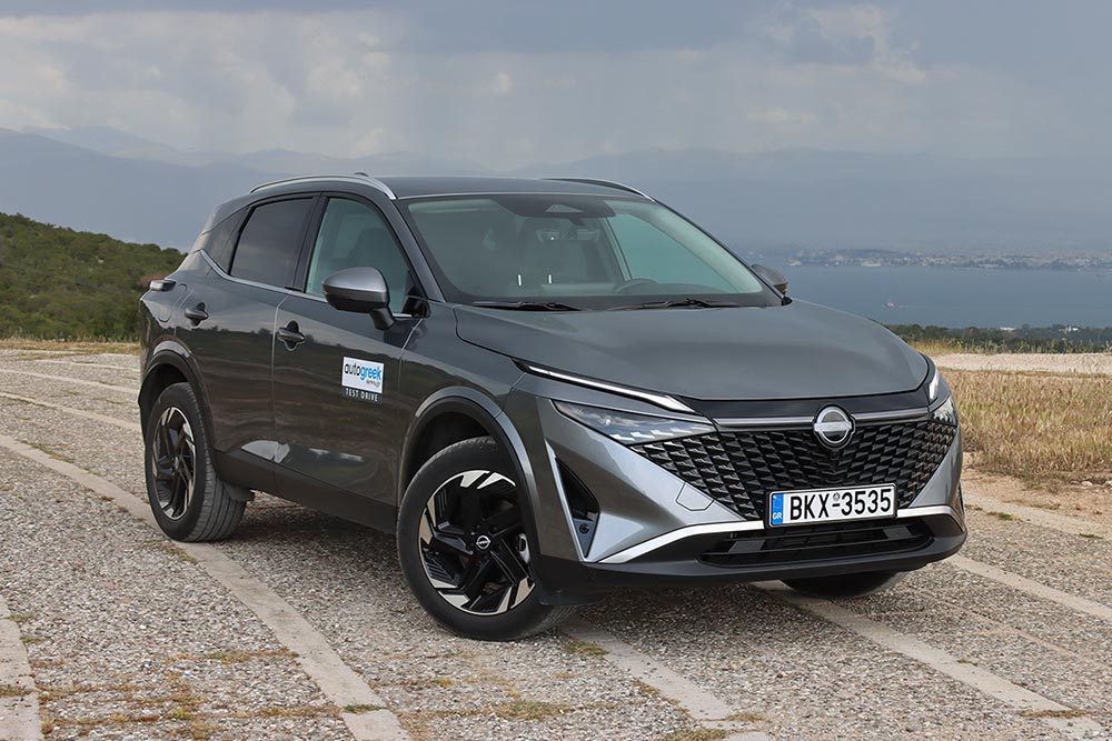 Ό,τι πρέπει για το αμάξωμα των 1.345 κιλών του νέου Nissan Qashqai είναι το mild hybrid 12V turbo τετρακύλινδρο μηχανικό σύνολο βενζίνης DiG-T των 1.332 κ.εκ. Η μέγιστη απόδοσή του φτάνει τους 140 ίππους στις 5.500 σ.α.λ. και τα 240 Nm ροπής στις 1.650-4.000 σ.α.λ., ενώ η μετάδοση γίνεται αποκλειστικά με χειροκίνητο κιβώτιο 6 ταχυτήτων. Η μακριά 6η σχέση διατηρεί χαμηλά τις στροφές του κινητήρα σε ρυθμούς ταξιδιού (130 χλμ./ώρα με σχεδόν 2.700 σ.α.λ.), χωρίς όμως να «κρεμάει» το μοτέρ από έλλειψη ισχύος. Ο κινητήρας παρουσιάζει ομαλή λειτουργία και εξαιρετικό τράβηγμα από τις χαμηλές στροφές, ενώ φτάνει τις ψηλότερες κλίμακες γραμμικά και χωρίς διστακτικότητα. Η επιτάχυνση από στάση στα 100 χλμ./ώρα ολοκληρώνεται σε 10,2 δλ. και η μέγιστη ταχύτητα φτάνει τα 196 χλμ./ώρα, με μεικτή κατανάλωση δοκιμής 8,7 λτ./100 χλμ. και εκπομπές CO2 143 γρ./χλμ. (100 ευρώ τέλη κυκλοφορίας). Στα προσόντα του Qashqai ανήκει και το πολύ καλό πάτημά του στο δρόμο, αφού μαζί με το χαμηλό θόρυβο κύλισης οι επιβάτες απολαμβάνουν ξεκούραστες διαδρομές, ενώ το αυτοκίνητο εμπνέει σιγουριά και είναι σταθερό σε όποια διαδρομή και να βρεθεί.