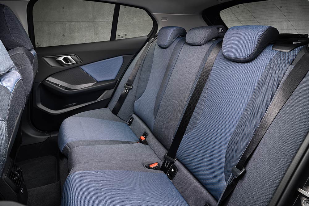 Εντελώς αλλαγμένο είναι το εσωτερικό της νέας BMW Σειράς 1, υιοθετώντας τα πρότυπα των μεγαλύτερων BMW. Κυρίαρχο στοιχείο αποτελεί το ενιαίο πάνελ που ενσωματώνει τον ψηφιακό πίνακα οργάνων των 10,25 ιντσών και την οθόνη αφής 10,7 ιντσών. Επίσης, ο αριθμός των κουμπιών και των χειριστηρίων έχει μειωθεί σημαντικά, ενώ κάποια λίγα υπάρχουν στην κονσόλα ανάμεσα από τα καθίσματα, μαζί με τον επανασχεδιασμένο επιλογέα των ταχυτήτων. Οι χώροι για τους επιβάτες παρέμειναν ως είχαν, όμως το πορτ μπαγκάζ μειώθηκε κατά 80 λίτρα στην 120 (300 λίτρα), λόγω της προσθήκης της μπαταρίας 48V κάτω από το δάπεδο.