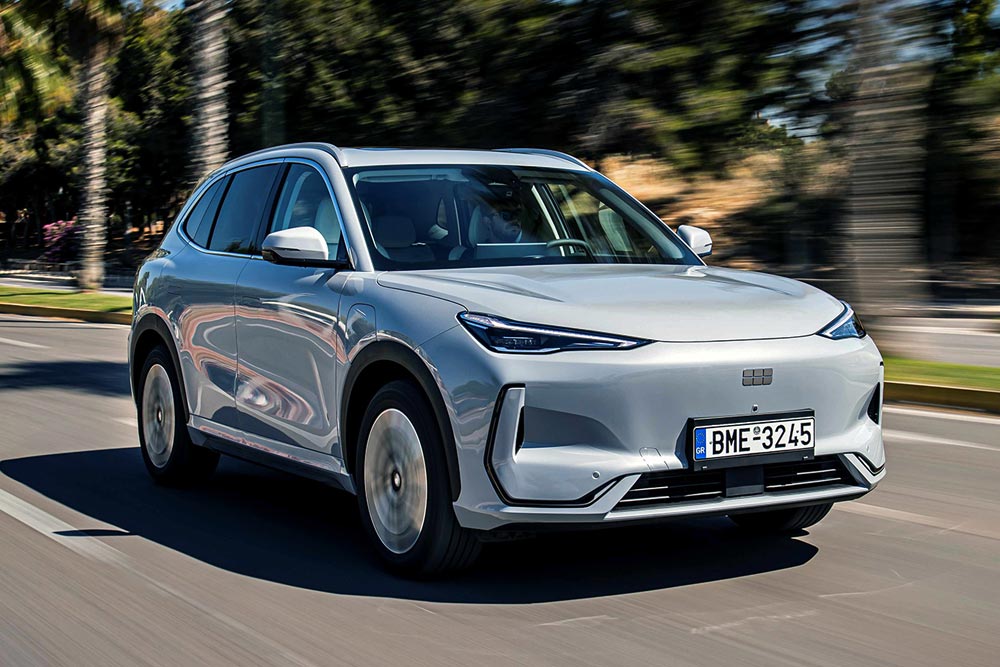 Το Geely EX5 των 1,7 τόνων κινείται από έναν ηλεκτροκινητήρα μέγιστης ισχύος 218 ίππων και 320 Nm ροπής, ενώ για την παροχή ρεύματος φροντίζει η μπαταρία LFP (φωσφορικού σιδήρου λιθίου) των 60,2 kWh τεχνολογίας «Short Blade». Αυτή εξασφαλίζει περίπου 3.500 κύκλους φόρτισης, αρκετούς για να διανύσει έως και 1.000.000 χιλιόμετρα. Η Geely ανακοινώνει κατανάλωση 15,8 kWh/100 χλμ. και έως 430 χλμ. μεικτής αυτονομίας με μια πλήρη φόρτιση. Επιπρόσθετα, τo Geely ΕΧ5 υποστηρίζει V2L Και V2V, μπορεί δηλαδή να τροφοδοτήσει με ρεύμα κάποιες συσκευές ή και να φορτίσει ένα άλλο ηλεκτρικό όχημα. Όσον αφορά τις επιδόσεις, φτάνει τα πρώτα 100 χλμ./ώρα σε μόλις 6,9 δλ. και την τελική ταχύτητα των 175 χλμ./ώρα. Με αρχιτεκτονική 400V η μέγιστη ισχύς ταχείας φόρτισης φτάνει έως τα 100 kW, που σημαίνει ότι για φόρτιση από 10%-80% απαιτούνται 28 λεπτά. Το Geely EX5 πατάει σε ανεξάρτητες αναρτήσεις (πολλαπλών συνδέσμων πίσω) και το πρώτο πράγμα που εντυπωσιάζει στην οδήγηση είναι η κορυφαία άνεση, τόσο από τον τρόπο που πατάει το αυτοκίνητο, όσο και από την πολύ καλή ηχομόνωση και την υψηλή ποιότητα κύλισης. Ταξιδεύει με σιγουριά και ευθύβολα, εστιάζοντας κυρίως στο να μεταφέρει «ατσαλάκωτους» τους επιβάτες του, και όχι σε εκείνους που αναζητούν σπορ αίσθηση.