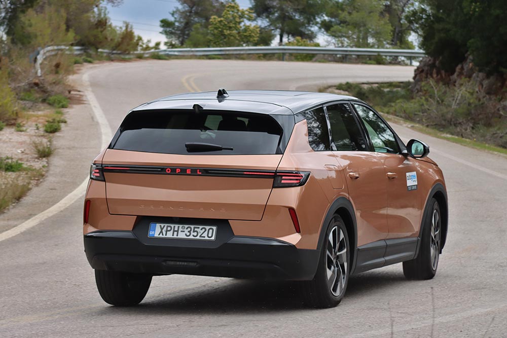 Βασισμένο στη νέα πλατφόρμα STLA Medium του ομίλου Stellantis, το νέο Opel Grandland διαθέτει στιβαρή συνολικά αίσθηση και είναι πολύ άνετο στο δρόμο. Γεγονός που συμβάλλουν και τα αμορτισέρ FSD (Frequency Selective Damping), που προσαρμόζουν αυτόματα το βαθμό απόσβεσης αναλόγως οδοστρώματος και στυλ οδήγησης. Έτσι το κορυφαίο SUV της Opel επιτυγχάνει μια αξιοσημείωτη ισορροπία μεταξύ απορρόφησης κραδασμών κατά το πέρασμα από τις ανωμαλίες του οδοστρώματος και κλίσεων του αμαξώματος σε διαδρομές με στροφές. Αυτές διατηρούνται σε πολύ λογικά επίπεδα για το συνολικό του όγκο, ενώ οι ευθείες των αυτοκινητόδρομων είναι… βούτυρο στο ψωμί του, αφού διανύει ξεκούραστα πολλά χιλιόμετρα.