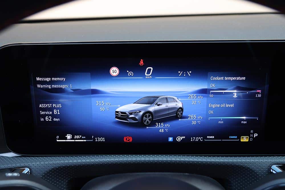 Αναφορικά με τον κινητήρα της Α 200, ο τετρακύλινδρος 1.33 λτ. υπερτροφοδοτούμενος παράγει 163 άλογα και 270 Nm ροπής, ενώ δέχεται τη συνδρομή ενός μικρού ηλεκτρικού μοτέρ με 14 ίππους και -κυρίως- 150 Nm. Το 48βολτο σύστημα ενισχύει την ελαστικότητα του βενζινοκινητήρα, αποτελώντας σύμμαχο του οδηγού, επιταχύνοντας το μικρομεσαίο χάτσμπακ σε 8,2 δλ. για το 0-100 χλμ./ώρα. Η κατανάλωση σε μεικτές πραγματικές συνθήκες βρίσκεται στα 7,5 λτ./100 χλμ. και με εκπομπές CO2 133 γρ./χλμ. τα τέλη κυκλοφορίας είναι 85 ευρώ. Το 7άρι αυτόματο κιβώτιο διπλού συμπλέκτη διακρίνεται για την ομαλότητα στις αλλαγές σχέσεων, ενώ με το πρόγραμμα Sport τις πραγματοποιεί και πολύ γρήγορα.