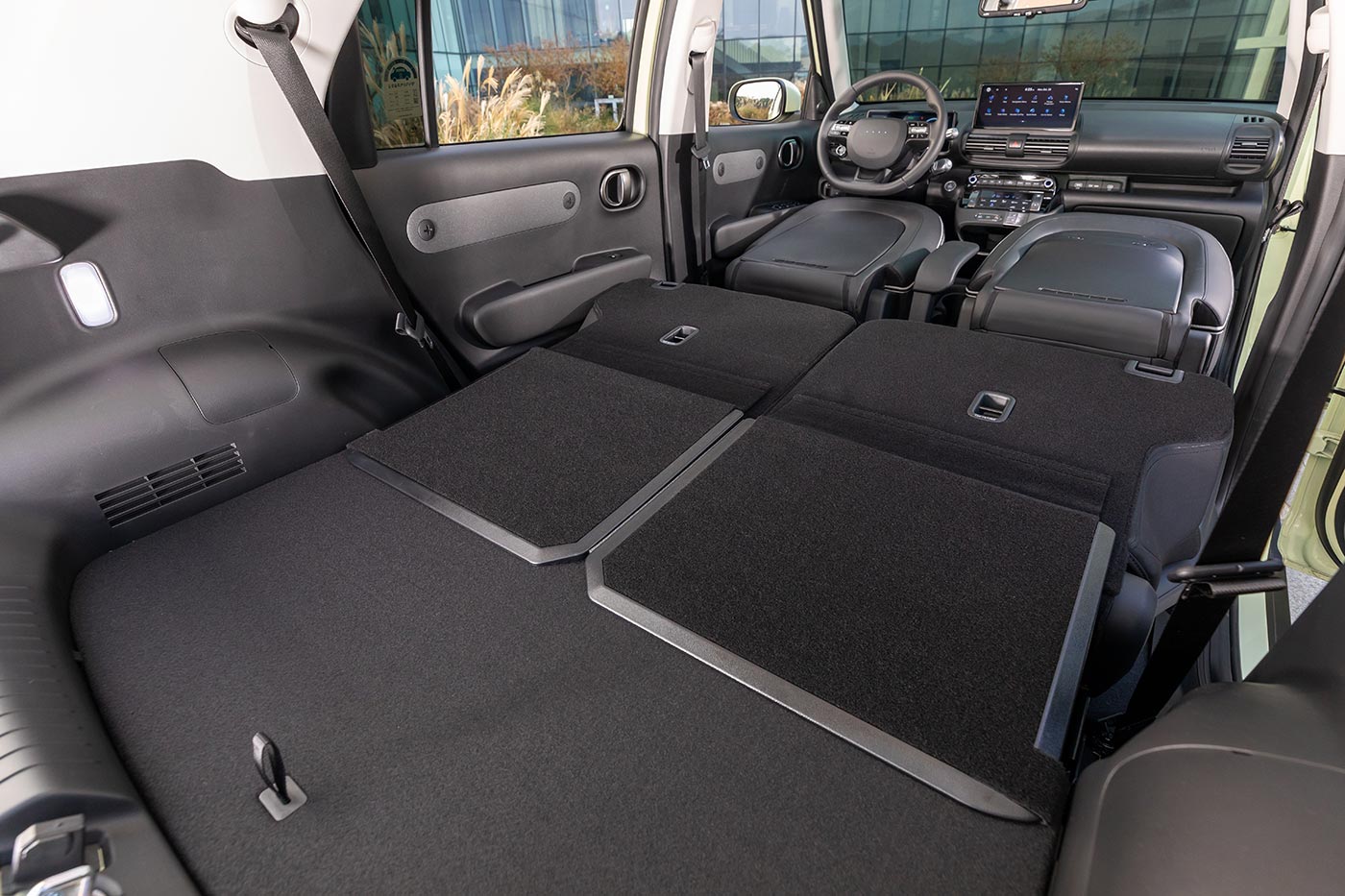 Μπαίνοντας στην καμπίνα του νέου Hyundai Inster, κυριαρχεί η ευρυχωρία. Παρά τις compact διαστάσεις, το εσωτερικό αποτελεί ένα πραγματικό μάθημα χωροταξίας, καθώς η Hyundai εκμεταλλεύτηκε στο έπακρο το μεταξόνιο των 2,58 μέτρων ώστε τέσσερις ενήλικες να βολευτούν με άνεση που συναντάμε σε μεγαλύτερα αυτοκίνητα. Η πρακτικότητα απογειώνεται χάρη στα συρόμενα και ανακλινόμενα πίσω καθίσματα (στις πιο ακριβές εκδόσεις), τα οποία επιτρέπουν τη διαμόρφωση του χώρου ανάλογα με τις εκάστοτε ανάγκες. Το πορτμπαγκάζ είναι 280 λίτρα και μπορεί να «εκτοξευθεί» έως τα 1.059 λίτρα με την αναδίπλωση των καθισμάτων. Το ψηφιακό cockpit αποτελείται από δύο μεγάλες οθόνες 10,25 ιντσών, μία για τον πίνακα οργάνων και μία αφής για το infotainment, με ασύρματη συνδεσιμότητα Android Auto και Apple CarPlay. Τέλος, διακρίνεται για την στιβαρή του κατασκευή και την πολύ καλή εργονομία, ενώ ο βιώσιμος χαρακτήρας του μοντέλου υπογραμμίζεται από τη χρήση υλικών φιλικών προς το περιβάλλον.