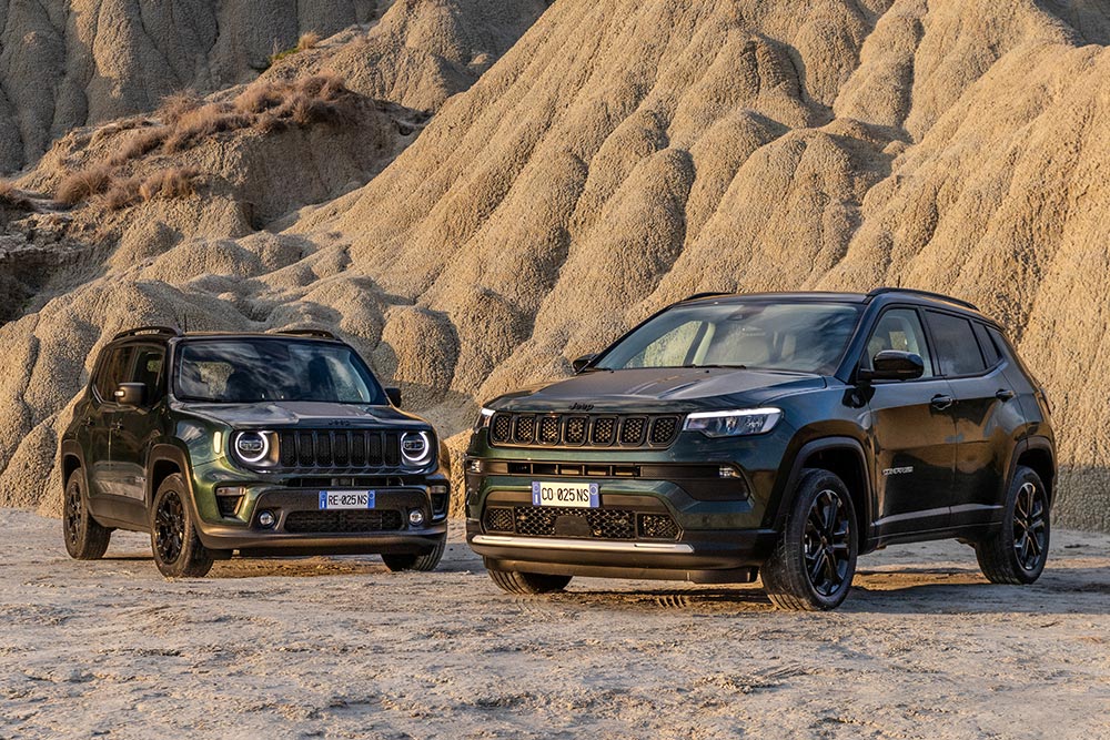 Τα Renegade και Compass διατίθενται επίσης σε εκδόσεις e-Hybrid με υβριδικό σύστημα κίνησης ισχύος 130 HP και κινητήρα βενζίνης turbo 1.5 λτ. Σε αυτή την περίπτωση η δύναμη φτάνει στους εμπρός τροχούς μέσω αυτόματου κιβωτίου διπλού συμπλέκτη με εφτά σχέσεις, ενώ η εισαγωγική τιμή είναι 28.790 ευρώ για το Renegade και 34.790 ευρώ για το Compass.
