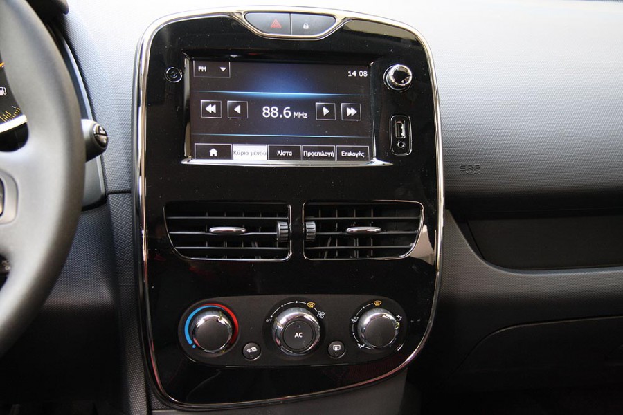 Το εσωτερικό του Clio είναι ευχάριστο αισθητικά, όπου η κεντρική κονσόλα με το σύστημα πολυμέσων R-Link και ο ξεχωριστής αισθητικής πίνακας οργάνων να κλέβουν τις εντυπώσεις θυμίζοντας μεγαλύτερης και πιο πολυτελούς κατηγορίας προτάσεις. Η εργονομία των