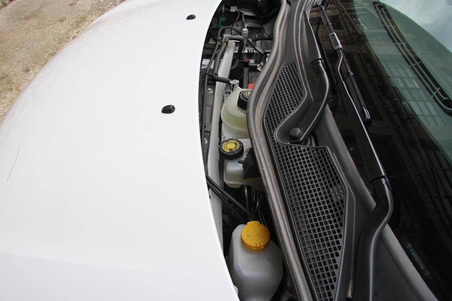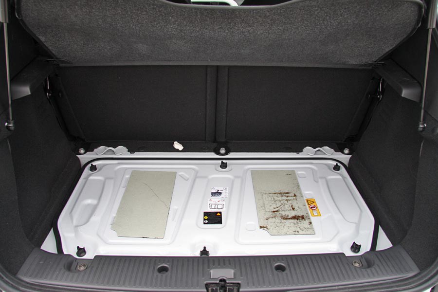αρκετά από το παχύ αφρώδες μονωτικό υλικό στο δάπεδο του πορτ μπαγκάζ, ωστόσο δεν λείπει το τρέμουλο στο ρελαντί. Κάτω από το εμπρός πλαστικό καπό (και φτερά), το οποίο ανοίγει από έξω και μετακινείται λίγα εκατοστά, υπάρχουν μόνο τα δοχεία πλήρωσης