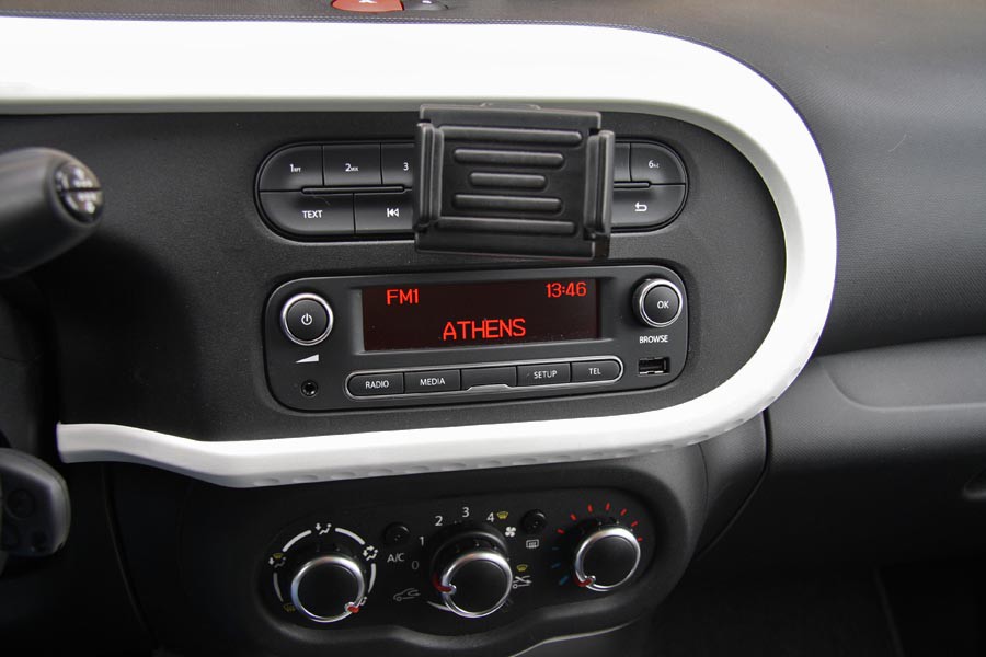 της κατηγορίας τόσο σε υφή όσο σε συναρμογή και φινίρισμα, ενώ δεν υπάρχουν ορατές μεταλλικές επιφάνειες όπως σε ανταγωνιστικά μοντέλα. Ο οδηγός του νέου Twingo κάθεται σχετικά ψηλά, αναπαυτικά και θα βρει εύκολα την κατάλληλη θέση. Την πρακτικότητα
