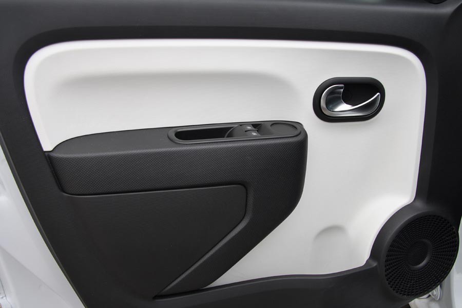 παράθυρα. Στον τομέα των χώρων, το νέο Twingo είναι σε θέση να μετακινήσει δίχως παραχωρήσεις τέσσερα ενήλικα άτομα, όμως οι πίσω θα ενοχληθούν από τα παράθυρα που ανοίγουν μόνο προς τα έξω, κάτι που δυστυχώς εφαρμόζεται σε πολλά μίνι 5θυρα αυτοκίνητα.