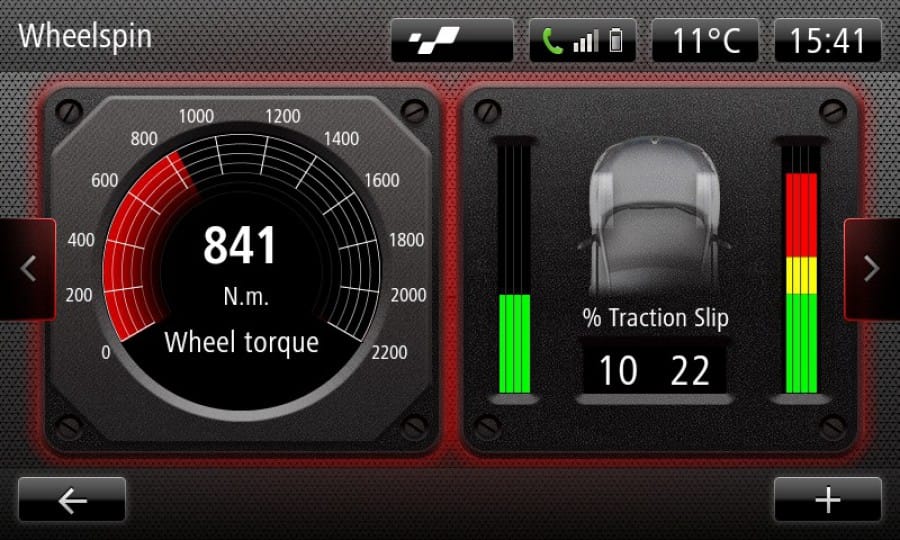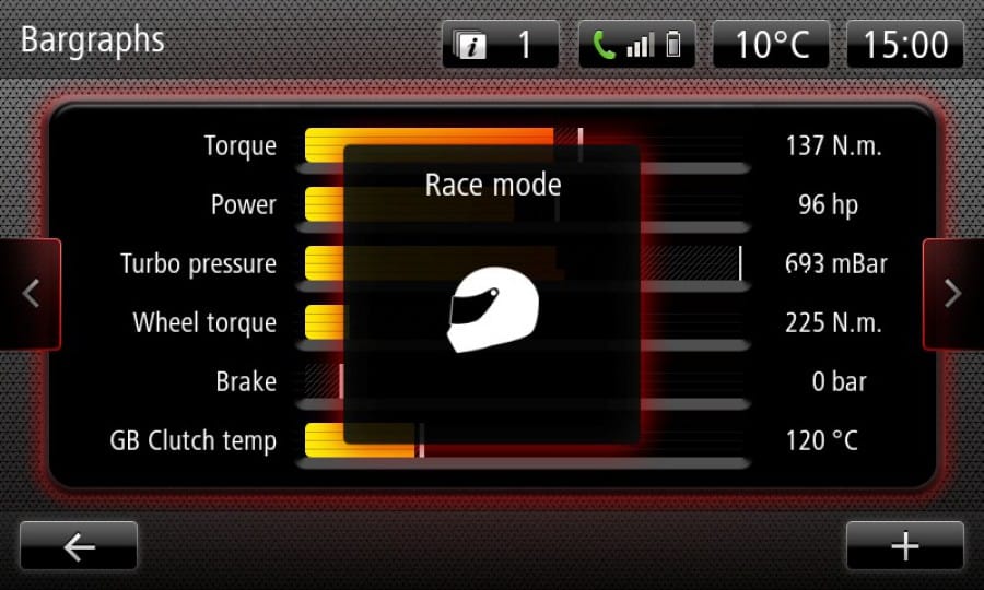 Στο εσωτερικό την σπορ ατμόσφαιρα τονίζουν τα τύπου μπάκετ καθίσματα, οι κόκκινες λεπτομέρειες σε πολλά σημεία, οι δερμάτινες επενδύσεις σε τιμόνι, επιλογέα ταχυτήτων και χειρόφρενο, όπως και τα αλουμινένια πεντάλ. Εντύπωση προκαλεί το σύστημα R-Link Monitor, το οποίο παρουσιάζει διάφορα στοιχεία από τη λειτουργία του αυτοκινήτου real time (ροπή, ιπποδύναμη, θερμοκρασία νερού, θερμοκρασία εισαγωγής, πίεση turbo, θέση πεταλούδας γκαζιού, γωνία τιμονιού, θερμοκρασία και πίεση λαδιού, θερμοκρασία κιβωτίου, τιμή ροπής ανά τροχό και άλλα) με βασικότερο ότι μπορεί επίσης να καταγράψει στοιχεία τηλεμετρίας Data logging, τα οποία αποθηκεύονται σε stick usb.
