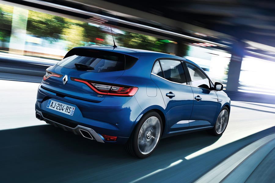 Το νέο Megane είναι χαμηλότερο κατά 25 χιλιοστά, διαθέτει φαρδύτερο μετατρόχιο κατά 47 χλστ. μπροστά και 39 χλστ. πίσω συγκριτικά με το προγενέστερο μοντέλο και το μεταξόνιο έχει αυξηθεί κατά 28 χιλιοστά. Πιο σπορτίφ εμφάνιση διαθέτει το νέο Megane GT με τους ανασχεδιασμένους προφυλακτήρες, τις δύο χρωμιωμένες απολήξεις της εξάτμισης και το εμπρός σπόιλερ, εμπνευσμένο σχεδιαστικά από τον κόσμο της F1. Η σπορ αυτή έκδοση θα είναι διαθέσιμη με το νέο χρώμα αμαξώματος «Iron Blue» συνδυασμένο με «Dark Metal» πινελιές, όπως στους καθρέπτες και στους προφυλακτήρες. Επίσης, πατάει σε 18 ιντσών ζάντες αλουμινίου, σχεδιασμένες ειδικά από την Renault Sport.