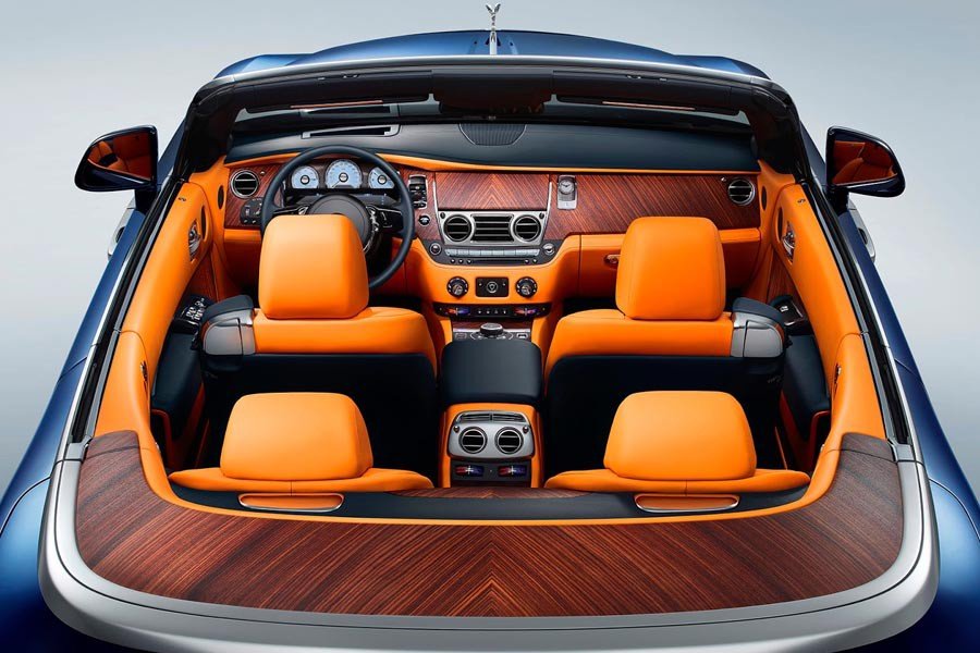 Η υφασμάτινη οροφή ανοίγει αθόρυβα μέσω ενός πολύ κομψού διακόπτη στην κεντρική κονσόλα σε χρόνο 22 δευτερολέπτων και εν κινήσει σε ταχύτητες έως 50 χλμ./ώρα, αφήνοντας σε κοινή θέα το υπερπολυτελές τετραθέσιο εσωτερικό. Στην πληθωρικών διαστάσεων, μήκους 5.285 χλστ., πλάτους 1.947 χλστ., ύψους 1.502 χλστ., με μεταξόνιο 3.112 χλστ. και βάρους 2.560 κιλών Rolls-Royce Dawn οι τέσσερις φιλοξενούμενοι μάλλον θα χρειαστεί να κάνουν παραχωρήσεις με τις αποσκευές τους, αφού η χωρητικότητα του πορτ μπαγκάζ κυμαίνεται μεταξύ 244 λτ. και 295 λτ.