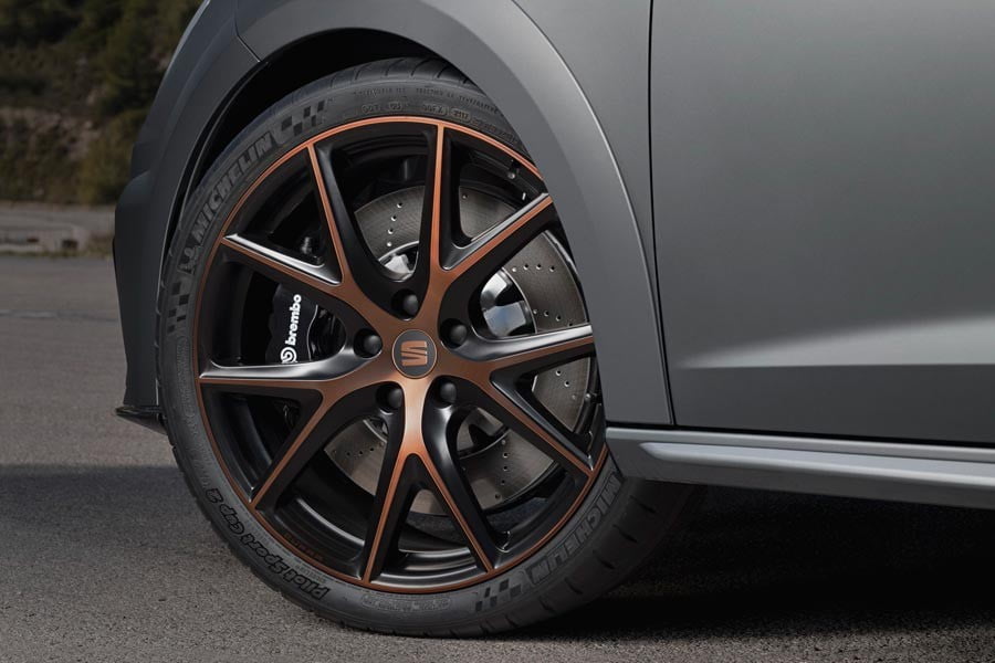 Εξωτερικά, το κορυφαίο Leon ξεχωρίζει από το carbon εμπρόσθιο σπόιλερ, την επίσης ανθρακονημάτινη πίσω αεροτομή, τις νέες πλαϊνές ποδιές, τον πίσω διαχύτη, τα καπάκια καθρεπτών στο χρώμα του χαλκού (όπως και το σήμα) και τους τονισμένους θόλους των τροχών, που φιλοξενούν τις νέας σχεδίασης ζάντες αλουμινίου των 19 ιντσών.