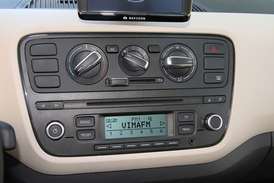 Στο εσωτερικό του Skoda Citigo είναι εμφανές από την πρώτη στιγμή ότι μιλάμε για μια πρόταση χαμηλού κόστους και αυτό απορρέει όχι από την ποιότητα αλλά από τον λιτό διάκοσμο και τις ακάλυπτες μεταλλικές επιφάνειες. Στη βασική έκδοση υπάρχουν τα απολύτως απαραίτητα από θέμα εξοπλισμού για τα δεδομένα της εποχής, ενώ την εικόνα αναβαθμίζει ελαφρώς η προαιρετική οθόνη πληροφοριών (Move & Fun) στο κέντρο του ταμπλό. Τα υλικά είναι σκληρά στην υφή σε όλα τα σημεία του εσωτερικού ωστόσο έχουν καλή συναρμογή και δεν παρατηρούνται τριγμοί. Ο πίνακας οργάνων ακολουθεί και εκείνος την λιτή σχεδίαση με μεγάλο ταχύμετρο στο κέντρο και εξαιρετικά μικρά όργανα δεξιά και αριστερά εκείνου (στροφόμετρο και δείκτης καυσίμου). Ατέλειες υπάρχουν στην εργονομία, όπως είναι η απουσία δεύτερου διακόπτη στην πόρτα του οδηγού για τον χειρισμό του ηλεκτρικού παραθύρου του συνοδηγού, ενώ το κάθισμα του οδηγού χάνει την ρύθμισή του κατά την ανάκλισή του.