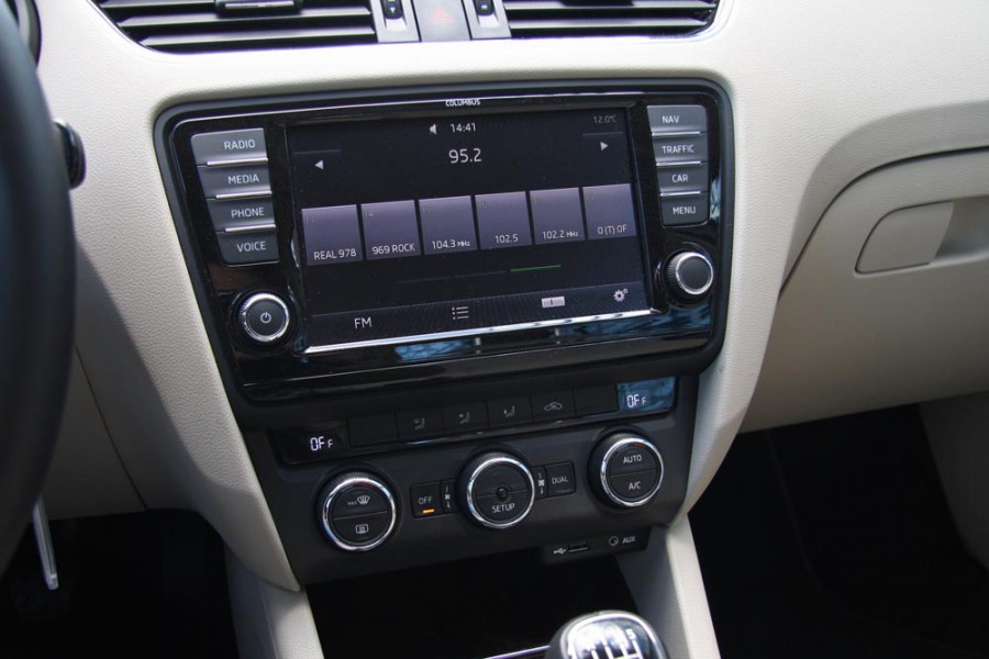 Στο εσωτερικό της νέας Octavia δεν λείπει κάτι που θα αναζητήσει ο αγοραστής ενός οικογενειακού αυτοκινήτου, ενώ συγκριτικά με την προγενέστερη αποπνέει περισσότερη πολυτέλεια. Το παχύ μαλακό πλαστικό που υπάρχει στο ταμπλό και στην κονσόλα, η γεροδεμένη κατασκευή, το προσεγμένο φινίρισμα αλλά και η μεγάλη οθόνη αφής των 5,8 ιντσών (προαιρετική με 200 ευρώ και στάνταρ στην Elegance) συνθέτουν την εικόνα ενός πολύ καλού μεσαίου αυτοκινήτου με premium χαρακτηριστικά. Μόνο ίσως στις επενδύσεις των θυρών θα θέλαμε λιγότερο πλαστικό και τμήματα από υφασμάτινες επενδύσεις. Στον τομέα των χώρων, η νέα Octavia είναι πλέον σαν Superb. Οι πίσω φιλοξενούμενοι κάθονται υπερ-άνετα, ενώ ο τεράστιος χώρος αποσκευών των 590 λίτρων με το πολύ μεγάλο άνοιγμα κάνει τις αποσκευές μιας οικογένειας να δείχνουν… λίγες.