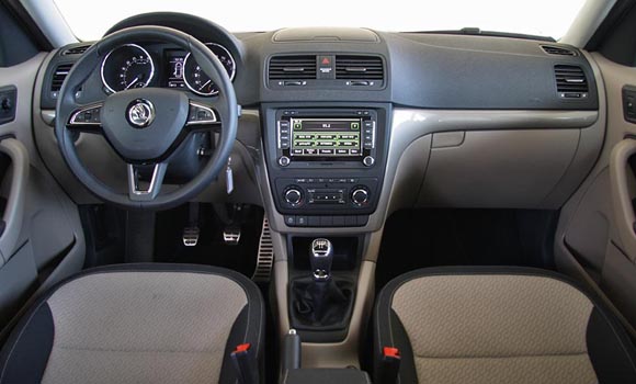 Στο εσωτερικό του ανανεωμένου Yeti οι αλλαγές εστιάζονται στις νέες επενδύσεις, τιμόνι και το πιο σύγχρονο σύστημα πολυμέσων. Η σχεδίασή του παραμένει ευχάριστη αλλά δείχνει τα χρόνια της συγκριτικά με των νεότερων μοντέλων της Skoda. Ποιοτικά είναι σε θέση να καλύψει και τους πιο απαιτητικούς, καθώς το πάνω μέρος του ταμπλό του αποτελείται από αφρώδες υλικό με ευχάριστη υφή, ενώ και τα σκληρά πλαστικά ικανοποιούν όπως ισχύει αντίστοιχα και με την στιβαρή συναρμολόγηση. Απροβλημάτιστη είναι και η εργονομία των σωστά τοποθετημένων και εύχρηστων χειριστηρίων, όπως και η ψηλή θέση οδήγησης. Από πλευράς πρακτικότητας το εσωτερικό του Yeti δεν έχει να ζηλέψει κάτι από ένα πολυχρηστικό αυτοκίνητο λόγω της παρουσίας πολλών αποθηκευτικών χώρων και των πολλαπλών ρυθμίσεων του πίσω καθίσματος. Το τελευταίο χωρίζεται σε τρία τμήματα, τα οποία σύρονται σε μια διαδρομή 80 χλστ., αναδιπλώνονται πλήρως και μπορούν ακόμα και να αφαιρεθούν. Έτσι 4 ή και 5 ενήλικα άτομα θα μετακινηθούν χωρίς παραχωρήσεις, ενώ η χωρητικότητα του ρηχού πορτ μπαγκάζ των 416 λτ. αυξάνεται εύκολα μέχρι τα 510 λτ. με τη μετακίνηση των πίσω καθισμάτων.