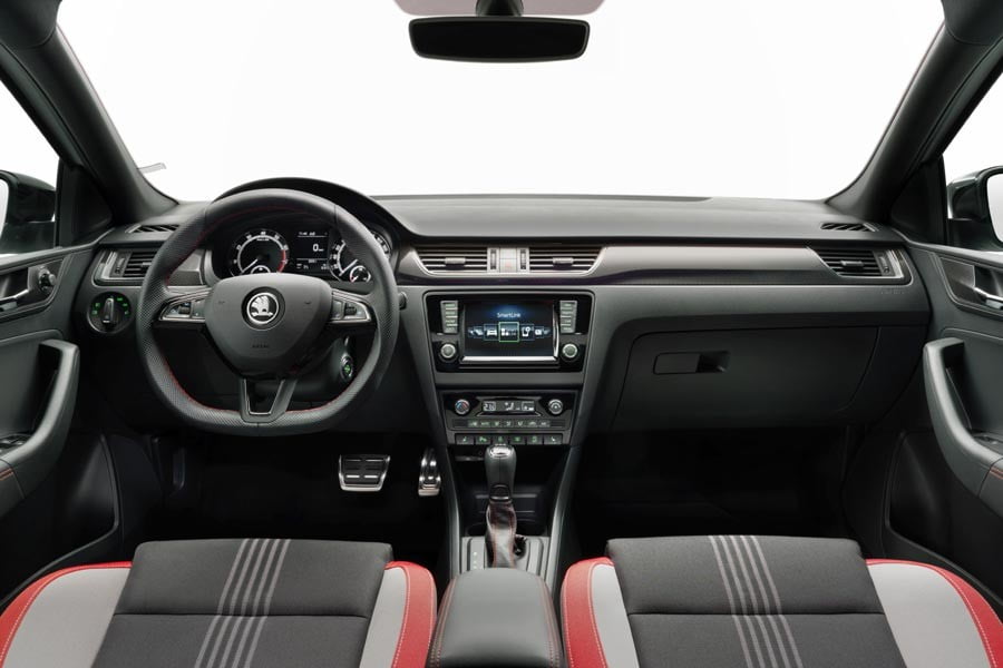 Περνώντας στο εσωτερικό, τα ανανεωμένα Skoda Rapid και Rapid Spaceback έρχονται με επιμέρους αλλαγές όπως είναι οι καινούργιες επενδύσεις στις πόρτες, αλλά και τα επανασχεδιασμένα χειριστήρια του air condition, τα ανανεωμένα όργανα στον πίνακα οργάνων και οι νέοι αεραγωγοί. Αναβαθμισμένη είναι και η γκάμα των συστημάτων infotainment, με WLAN hotspot και 2 έξτρα USB θύρες στο πίσω μέρος.