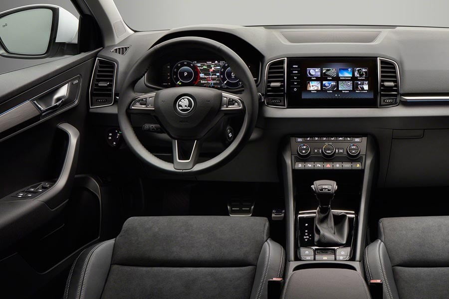 Για το εσωτερικό, η Skoda υπόσχεται γενναιόδωρους χώρους για τους επιβάτες και τις αποσκευές (521 λτ.), καθώς και μεγάλη πρακτικότητα μέσω και των τριών πίσω ανεξάρτητων και πλήρως ρυθμιζόμενων καθισμάτων. Με την πλήρη αναδίπλωσή τους, το Karoq φτάνει τα 1.810 λίτρα χωρητικότητας. Σημείο αναφοράς αποτελεί ο ψηφιακός πίνακας οργάνων, ο οποίος τοποθετείται για πρώτη φορά σε μοντέλο της Skoda.