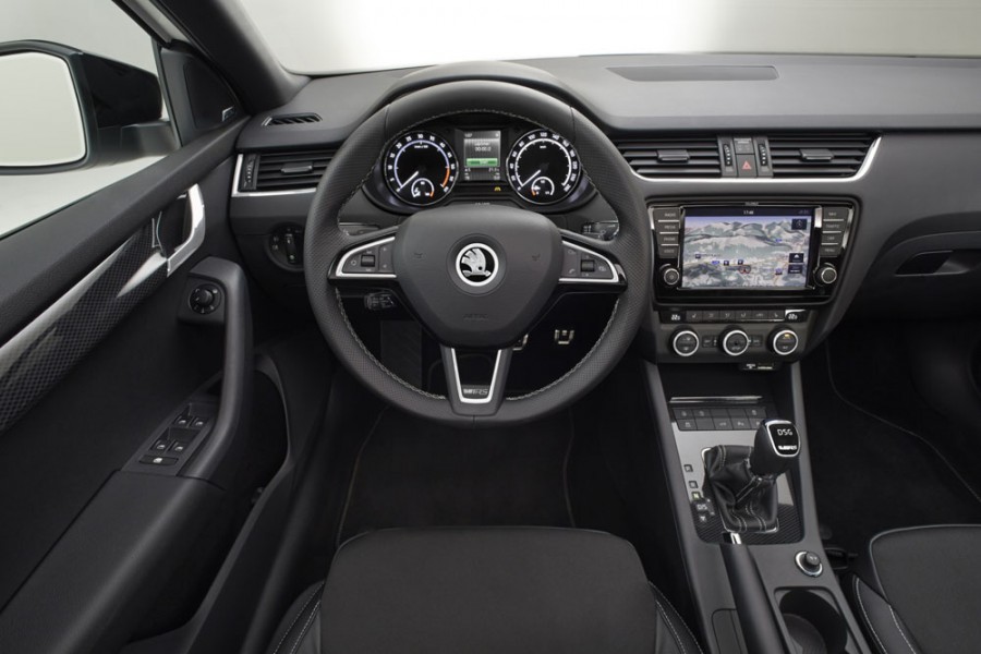 Πριν από ένα περίπου μήνα παρουσιάστηκε επίσημα η νέα κορυφαία Skoda Octavia RS στις εκδόσεις με το σεντάν και το στέισον βάγκον αμάξωμα, χωρίς όμως να δοθούν φωτογραφίες από το εσωτερικό. Το τελευταίο κάνει την πρώτη του εμφάνιση μέσω του καταλόγου της Octavia RS και χωρίς κραυγαλέα και περιττά στοιχεία εντυπωσιασμού διαθέτει τα απαραίτητα δυναμικά χαρακτηριστικά. Ορισμένα από αυτά είναι το τριών ακτινών τιμόνι με το διάτρητο δερμάτινο τιμόνι, τα τύπου μπάκετ καθίσματα, οι επενδύσεις ανθρακονήματος στις πόρτες και στην βάση του επιλογέα των ταχυτήτων και τα ανοξείδωτα πεντάλ.
