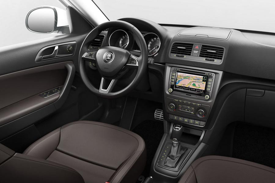 Στο εσωτερικό του ανανεωμένου Skoda Yeti υπάρχει νέας σχεδίασης τιμόνι με πιο σπορτίφ εμφάνιση και αλλαγμένες επενδύσεις. Στον εξοπλισμό του προστέθηκε κάμερα οπισθοπορείας, καθώς και το σύστημα εισόδου – εξόδου και εκκίνησης του κινητήρα χωρίς κλειδί (KESSY).