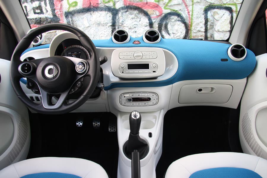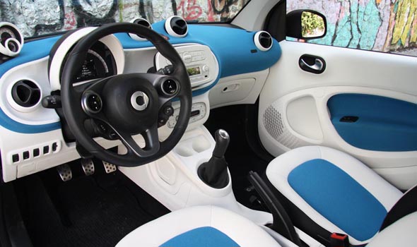 Το εσωτερικό του νέου smart fortwo είναι όμορφο και σε αυτή τη γενιά, εκφράζοντας άμεσα τον νεανικό και στιλάτο χαρακτήρα του μέσω της μοντέρνας σχεδίασης και των ευχάριστων χρωματικών επιλογών των επενδύσεών του. Αρχικά τις εντυπώσεις κερδίζει ο όμορφος και σύγχρονος πίνακας οργάνων, η κεντρική κονσόλα που αιωρείται ελαφρώς από το ταμπλό και το καλαίσθητο τιμόνι του. Η ποιότητα βρίσκεται σε καλά επίπεδα, με ύφασμα να καλύπτει το ταμπλό στο μεγαλύτερο μέρος του, ενώ και τα πλαστικά τμήματα είναι καλής ποιότητας και εμφανίζουν καλή συναρμογή. Πολύ καλή είναι και η θέση οδήγησης με τον οδηγό να κάθεται ψηλά και άνετα έχοντας καλή ορατότητα προς όλες τις κατευθύνσεις, ωστόσο από το εσωτερικό του δεν λείπουν και οι εργονομικές ατέλειες. Οι χώροι για 2 επιβάτες είναι για άλλη μια φορά υπεραρκετοί και μεγαλύτεροι από των προηγούμενων smart. Επίσης, ο χώρος αποσκευών έχει χωρητικότητα 190 λίτρων και φτάνει μέχρι την οροφή τα 350 λίτρα.