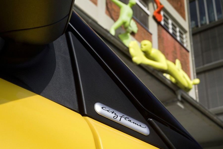 Πριν από λίγες μέρες το autogreeknews είχε αποκαλύψει τη νέα έκδοση «cityflame» του smart fortwo, η οποία ξεχωρίζει για τον συνδυασμό κίτρινου-μαύρου εξωτερικά και στο εσωτερικό. Έτσι στο αμάξωμα όλα τα πάνελ είναι σε κίτρινο χρώμα, ενώ το πλαίσιο Tridion, οι καθρέπτες, οι 3 ακτίνων ζάντες, η μάσκα και ο αεραγωγός του εμπρός προφυλακτήρα είναι μαύροι. Στο εσωτερικό το ταμπλό, τα καθίσματα και το τιμόνι με τα paddles είναι επενδυμένα με μαύρο δέρμα με κίτρινες προσθήκες και επίσης κίτρινες ραφές. To smart fortwo cityflame θα παραχθεί σε μόλις 2.400 μονάδες και βασίζεται στην έκδοση passion με την πανοραμική οροφή, τον κλιματισμό, το ηχοσύστημα κ.α., ενώ η αρχική τιμή του (στην Γερμανία) με τους κινητήρες των 71 και 84 ίππων ανέρχεται στα 14.490 και 15.060 ευρώ για το coupe και στα 17.850 και 18.150 ευρώ για το cabrio αντίστοιχα.