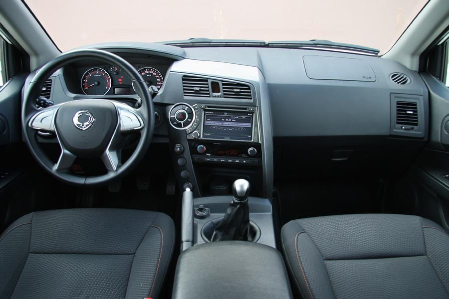 Μετά την εμφάνιση, το δεύτερο μήνυμα πως δεν πρόκειται για ένα παραδοσιακό διπλοκάμπινο pickup, το Actyon Sports στο στέλνει από το εσωτερικό του. Το πλαστικά σε πείθουν με τη συναρμολόγησή τους για την ανθεκτικότητά τους, ενώ η συναρμογή τους και το φινίρισμα δεν παρουσιάζει ατέλειες. Η θέση οδήγησης είναι ψηλή και με μεγάλο εύρος ρυθμίσεων (χωρίς όμως τηλεσκοπική ρύθμιση τιμονιού). Ο πίνακας οργάνων είναι ευανάγνωστος, έχει και ψηφιακή οθόνη για τον υπολογιστή ταξιδιού, ενώ η εργονομία είναι απροβλημάτιστη. Εξοικείωση και διάβασμα εγχειριδίου θα χρειαστεί κανείς μόνο για την οθόνη αφής του συστήματος πολυμέσων. Θήκες για μικροαντικείμενα υπάρχουν πάρα πολλές και σε βολικά σημεία, με μοναδική παραφωνία τις τσέπες στις πόρτες, οι οποίες είναι στενές. Εκεί όμως που πραγματικά ξεχωρίζει το Actyon Sports είναι στις πίσω θέσεις, στις οποίες θα βολευτούν άνετα δύο ενήλικες, ενώ και τρίτος μπορεί να χωρέσει με παραχωρήσεις. Μάλιστα η πλάτη των καθισμάτων έχει αρκετά καλή κλίση και δεν κουράζει ακόμη και σε ταξίδια. Κάτι που δεν συναντάμε στα παραδοσιακά διπλοκάμπινα, αφού δίνουν προτεραιότητα στην καρότσα και έτσι έχουμε σχεδόν κάθετη πλάτη στις πίσω θέσεις.