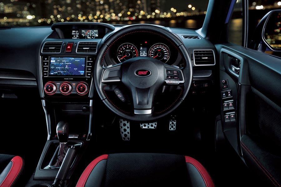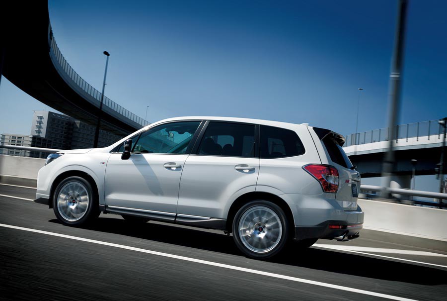 Εξωτερικά, το πιο δυναμικό Forester ξεχωρίζει από τους πιο σπορτίφ σχεδίασης προφυλακτήρες STI, τα λογότυπα STI, την αεροτομή οροφής, τα μαύρα καλύμματα των καθρεπτών, τις διακριτικές κόκκινες λωρίδες, τις σφυρήλατες ζάντες αλουμινίου των 19 ιντσών και τα φιμέ παράθυρα. Στο εσωτερικό του Forester tS διακρίνονται οι επενδύσεις από δέρμα και σουέτ με κόκκινες ραφές, τα λογότυπα STI, οι επενδύσεις από ανθρακόνημα, τα πεντάλ αλουμινίου κ.λπ.