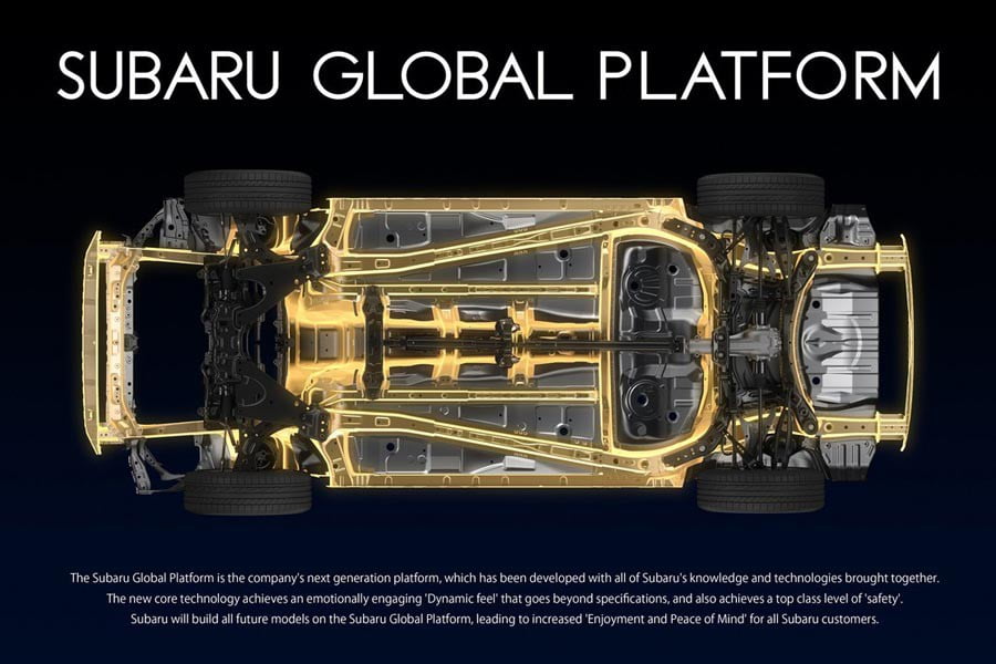 Η νέα πλατφόρμα θα προσφέρει αυξημένα επίπεδα οδηγικής εμπειρίας, αλλά και ανέσεων. Η σημαντικά ενισχυμένη δομή της θα διαθέτει αυξημένη κατά 70% στρεπτική ακαμψία και θα επιτυγχάνει μείωση του κέντρου βάρους κατά 5 χλστ. Χαρακτηριστικά που μόνο θετικά στοιχεία θα προσφέρουν στην οδική συμπεριφορά του αυτοκινήτου. Επιπλέον η απορρόφηση της ενέργειας που εκλύεται σε μια σύγκρουση θα είναι βελτιωμένη κατά 40%, σε σύγκριση πάντα με των υπαρχόντων Subaru.