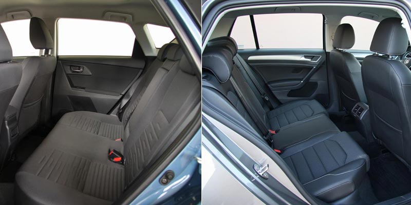 Οι δύο best-seller επιλογές της μικρομεσαίας κατηγορίας είναι σε θέση να καλύψουν με άνεση τις ανάγκες μιας οικογένειας, χωρίς να απαιτούν μεγάλες παραχωρήσεις. Έτσι, στο πίσω κάθισμα του Auris υπάρχει αρκετό ωφέλιμο πλάτος, ύψος και αέρας για τα πόδια των επιβατών, ενώ το επίπεδο δάπεδο διευκολύνει το χώρο για τα γόνατα και μεσαίου καθήμενου. Στο Golf από την άλλη, ο χώρος για τα γόνατα δείχνει μεγαλύτερος και υπάρχει άφθονο ύψος για τα κεφάλια ακόμη και υψηλόσωμων επιβαινόντων. Στη μάχη των πορτ-μπαγκάζ, το Golf υπερτερεί κατά 20 λίτρα του Auris (380-360 λτ.), διαθέτοντας και διπλό δάπεδο, ενώ το Auris προσφέρει επιπλέον κάποιες θήκες για μικροαντικείμενα ακριβώς από κάτω από το δάπεδό του.