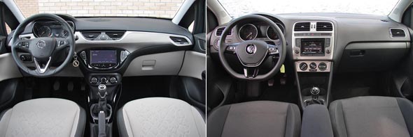 Συγκρίνοντας τα βασικά μοντέλα με τα 5θυρα αμαξώματα, βλέπουμε ότι το Corsa 1.3 CDTI Enjoy με τιμή από 15.300 ευρώ, είναι φθηνότερο κατά 655 ευρώ από το αντίπαλο Polo 1.4 TDI 90hp Trendline. Στον εξοπλισμό τους προσφέρονται όλα τα απαραίτητα στοιχεία ανέσεων και ασφαλείας, ωστόσο υπάρχουν ορισμένες διαφορές: Το Corsa εφοδιάζεται και με ξεχωριστούς αερόσακους οροφής, ενώ στο Polo οι πλευρικοί αερόσακοι είναι θώρακος/κεφαλής. Επιπλέον, το Polo διαθέτει το σύστημα αποφυγής πολλαπλών συγκρούσεων (Multi-collision Brake), καθώς και πιο σύγχρονο σύστημα infotainment με έγχρωμη οθόνη αφής 5 ιντσών, αντί του «κλασικού» ράδιο CD στο Corsa.