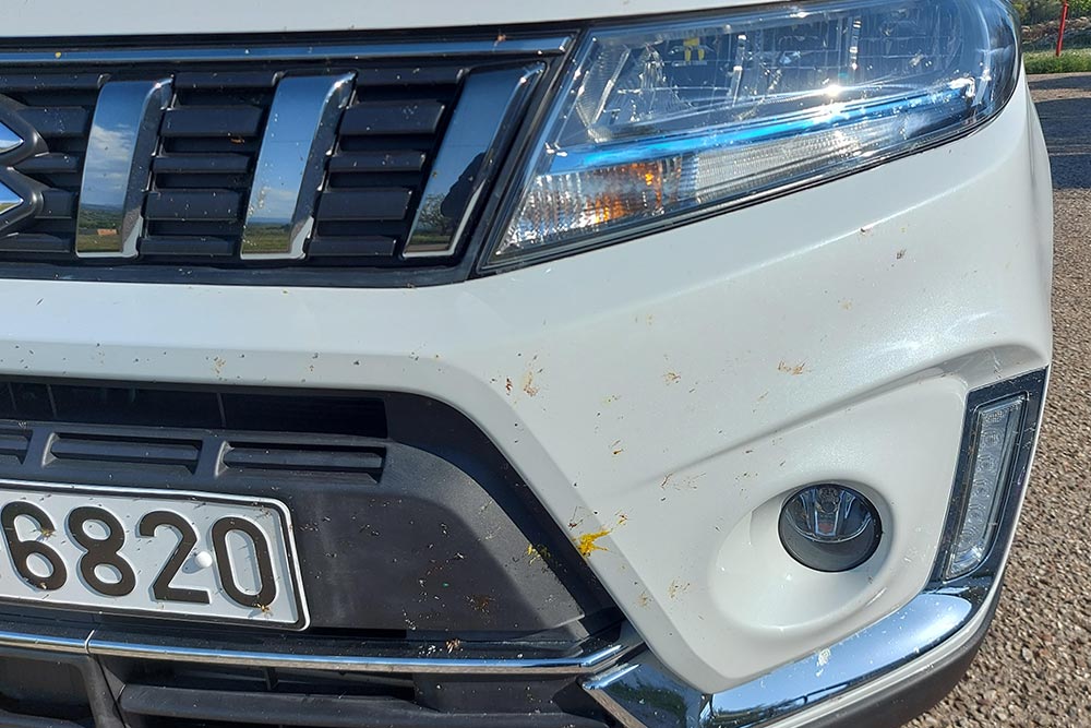 Σε κάθε περίπτωση και όταν φτάσετε στον τελικό σας προορισμό, όπου μετά από αρκετά χιλιόμετρα στην εθνική οδό και σε επαρχιακά δίκτυα το εμπρός μέρος του οχήματος θα έχει γίνει… αγνώριστο, καλό είναι να καθαριστεί αμέσως. Έτσι τα έντομα θα απομακρυνθούν πιο εύκολα, γιατί αν μείνουν για πολλές μέρες κολλημένα, τότε απαιτείται περισσότερο τρίψιμο και πλυστικό μηχάνημα. Ποτέ όμως μην ασκείτε υπερβολική πίεση γιατί ενδέχεται να χαλάσει το βερνίκι του χρώματος. Αρχικά θα πρέπει να μουσκέψουν για να μαλακώσουν. Ελάχιστα χλιαρό νερό μαζί με λίγο σαπούνι (έστω χεριών αν δεν υπάρχει σαμπουάν αυτοκινήτου) θα βοηθήσει πάρα πολύ.