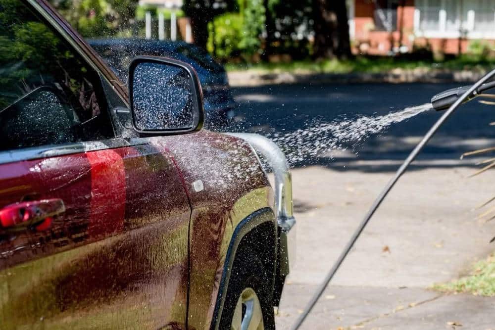 Καταρχάς, είναι απαραίτητο ένα πολύ καλό πρώτο ξέπλυμα, έτσι ώστε να απομακρυνθούν όλες οι βρωμιές. Διαφορετικά θα κολλήσουν στο σφουγγάρι και θα γεμίσουν λεπτές γρατσουνιές το χρώμα. Η μία λύση είναι με λάστιχο και «πιστόλι» και η άλλη είναι με πλυστικό. Στη δεύτερη περίπτωση, επειδή η πίεση είναι υψηλή, πρέπει το ακροφύσιο να έχει μια απόσταση 30 εκατοστών από το αμάξωμα, πόσο μάλλον όταν υπάρχουν ταλαιπωρημένα τμήματα (θαμπά σημεία ή με ξεφλουδισμένο χρώμα, μην πούμε για σκουριές).