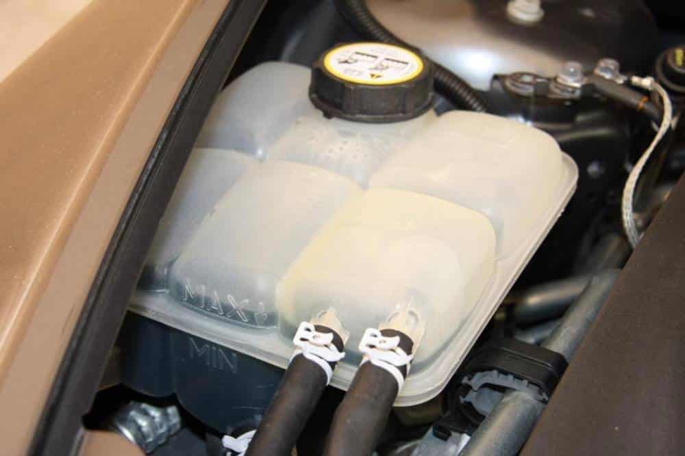 Περιμένουμε μέχρι να κρυώσει ο κινητήρας και ελέγχουμε τη στάθμη του ψυκτικού υγρού στο δοχείο. Δεν ανοίγουμε ποτέ το καπάκι με ζεστό τον κινητήρα ή σε λειτουργία, γιατί θα πεταχτεί με δύναμη μαζί με καυτά υγρά, τα οποία θα προκαλέσουν σοβαρά εγκαύματα. Για να κρυώσει πιο γρήγορα ο κινητήρας ανοίγουμε το καλοριφέρ φουλ στο ζεστό, ιδανικά με σβηστό τον κινητήρα (και εν κινήσει, αν δεν μπορούμε να σταματήσουμε ασφαλώς, κι ας λιώσουμε στη ζέστη), ώστε να βοηθήσουμε την απαγωγή θερμότητας.. Εάν έχει πέσει η στάθμη του ψυκτικού υγρού συμπληρώνουμε, ιδανικά με παραφλού ή απιονισμένο νερό. Αν δεν έχουμε τίποτα από τα δύο στο πορτμπαγκάζ ή δεν υπάρχει βενζινάδικο κοντά, βάζουμε ό,τι νερό βρούμε. Σημασία έχει να πέσει η θερμοκρασία, τα άλατα είναι δευτερεύοντα και τριτεύοντα. Βάζουμε μπροστά τον κινητήρα και παρατηρούμε αν παίρνει τον ανήφορο ο δείκτης, ενώ ελέγχουμε και για τυχόν διαρροές από κάτω.