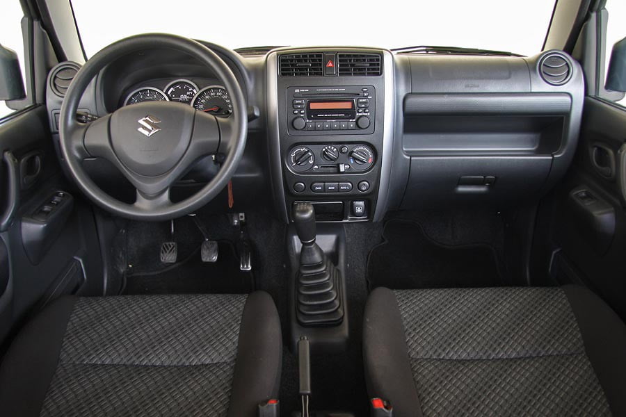 Στο εσωτερικό του Jimny οι σχεδιαστικές αλλαγές από την τελευταία ανανέωση εντοπίζονται αποκλειστικά στον πίνακα οργάνων. Εκεί, οι νίκελ δακτύλιοι συνδυάζονται αρμονικά με το ανασχεδιασμένο φόντο των οργάνων. Είναι γεγονός πάντως πως η καμπίνα του μικρού Suzuki δείχνει πλέον κάπως εκτός εποχής. Η ποιότητα των υλικών εκτός του ταμπλό θα μπορούσε να έχει αναβαθμιστεί κάπως. Το ίδιο ισχύει και για τα καθίσματα που παραμένουν σκληρά. Βασικό μειονέκτημα είναι οι περιορισμένοι χώροι, αφού στο πίσω τμήμα ακόμα και άτομα με ύψος γύρω στα 1,7 μ. δύσκολα θα χωρέσουν, ενώ το πορτ μπαγκάζ των μόλις 113 λίτρων επαρκεί για τα άκρως απαραίτητα