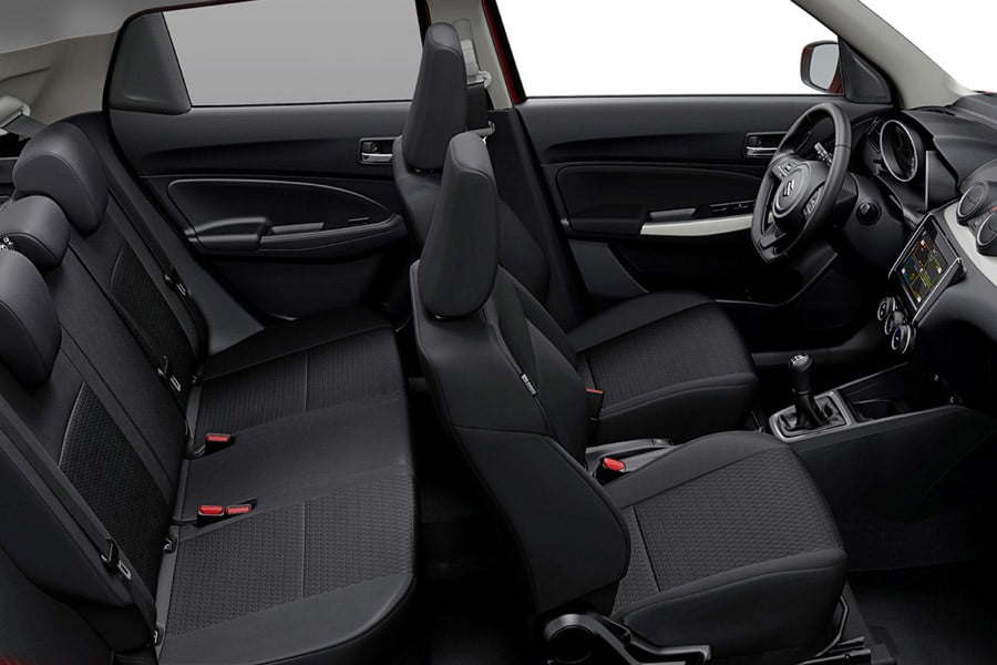 Με βάση αυτές τις διαστάσεις αλλά και λόγω της χαμηλότερης τοποθέτησης των καθισμάτων στο εσωτερικό, η Suzuki ανακοινώνει ότι το νέο Swift προσφέρει περισσότερο χώρο για τα κεφάλια των επιβατών και για τους ώμους τους στο πίσω κάθισμα. Επίσης, το πορτ-μπαγκάζ έχει μεγαλώσει και φθάνει πλέον στα 254 λίτρα (+54 λίτρα).