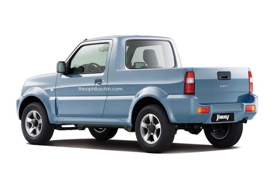 Πως θα σας φαινόταν μια «αγροτική» έκδοση του Jimny με pickup αμάξωμα; Σίγουρα καθόλου άσχημα και πιθανώς να είχε μεγάλη απήχηση σε περιοχές με στενούς και κακοτράχαλους δρόμους (π.χ. σε νησιά). Σε συνδυασμό με τα πολύ καλά εκτός δρόμου χαρακτηριστικά του μοντέλου, το χαμηλό βάρος και ένα ντίζελ 1.300άρη κινητήρα θα έλυνε τα χέρια σε πολλούς επαγγελματίες. Ωστόσο ποτέ (μάλλον) δεν πρόκειται να γίνει πραγματικότητα, αλλά μια εικόνα για το πώς μπορεί να έμοιαζε δίνει ο ανεξάρτητος σχεδιαστής Theophilus Chin. Ο τελευταίος μάκρυνε το μεταξόνιο, αφαίρεσε το πίσω τμήμα της καμπίνας επιμηκύνοντάς το και στη θέση της δημιουργήθηκε η καρότσα.